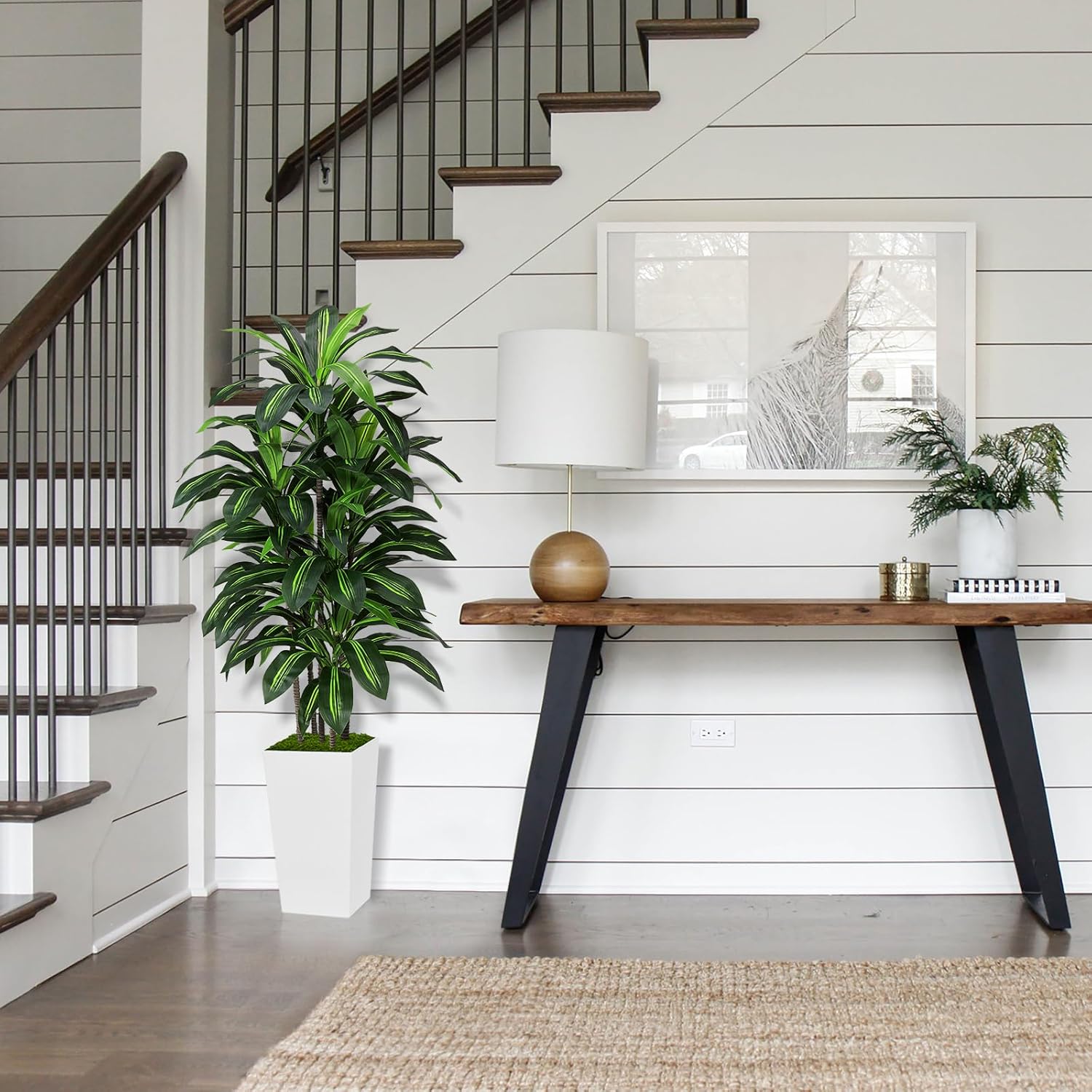 Artificial Dracaena Plant Indoor 5FT - Fake Tree with White Tall Planter - Faux Yucca Tall Fake Floor Plant in Pot - Artificial Trees for Home Office Living Room Decor Indoor