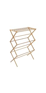 Remove wear and tear on your favorite clothing items by air-drying them on this collapsible bamboo drying rack. With 25 linear feet of drying space across multiple tiers, it provides plenty of room for vintage tees, jeans, sweaters, towels, and delicates. The multi-level design also makes it an ideal sweater drying rack, helping knits keep their shape without stretching. Skip bulky electric dryers and save on energy costs with this foldable clothes drying rack. Whether you live in a small living space, appartment, dorm or RB, air-drying your clothes helps prevent fading and shrinking while reducing electricity use. Plus, when not in use, it collapses flat for compact, space-saving storage. Designed for indoor and outdoor use, this collapsible drying rack for laundry is made from durable bamboo. Its natural bamboo finish adds a stylish touch to any laundry room, balcony, or patio, making it both functional and aesthetically pleasing. Unlike a electric dryer, this sustainable alternative extends the life of your clothes. For those who love a laundry area that looks great, this stunning bamboo clothing rack is not only easy on the eyes, but easy on the earth, too.