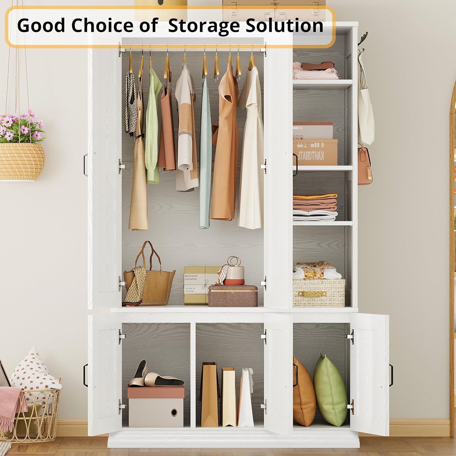 LIKIMIO Armoire Wardrobe Closet 70" H, 5 Doors Bedroom Wooden Wardrobe with 4 Storage Shelves and Hanging Rod, Clothing Storage Cabinet Organizer Combination, White