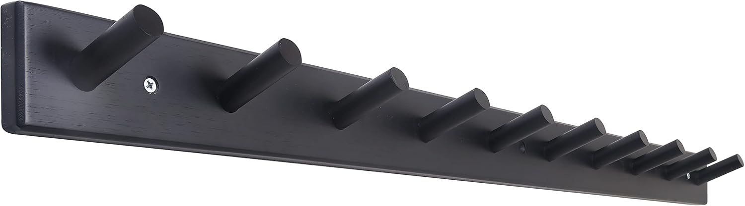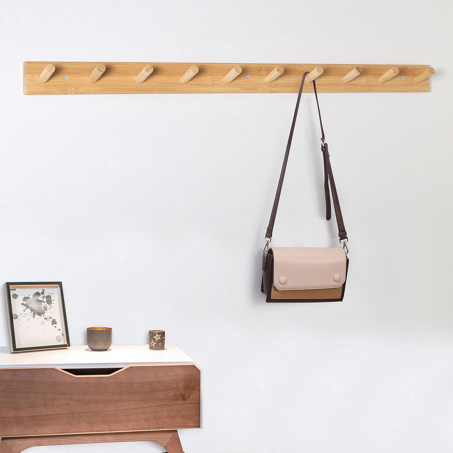 SKOLOO Wood Coat Rack Wall Mounted,10 Peg Long Bamboo Hook for Hanging Backpack Coat Towel Hat,16'' Hole to Hole,Natural